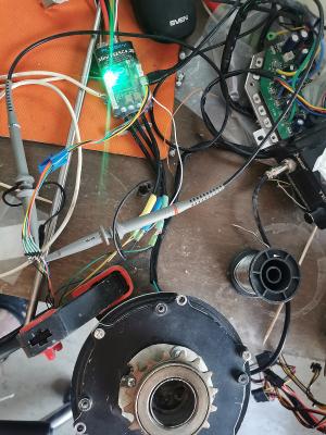Mike , подключите осциллограф прямо к 3 выводам процессора которые получают сигналы от датчиков холла , включите ждущий режим , прокрутите колесо , потом растащите осциллограмму так чтобы можно было сдвинуть фазы холлов к одной вертикальной точке синхронизации и вы сразу увидите где и на какой фазе у вас различие во времени фронтов/спадов сигнала переключения холлов , не исключено что конденсаторы могли поплыть по емкости , если учесть по умолчанию что процессор работает исправно , то вы сразу определите в чем у вас проблема , величина временного сдвига фаз ( то есть время на которое вы сдвинули фазы ) даст вам информацию об угловом перемещении и временной работе датчиков холла , а поскольку вы записали осциллограмму по времени и частоте вращения колеса то промотайте осциллограмму и посмотрите сохраняется ли установленная вами синхронизация по всей длине осциллограммы , что касается ерпм это электрические обороты а не механические , то есть циклическое повторение комбинаций датчиков холла или переход с группы фаз на следующую группу фаз , и потом , по тому что вы говорите/пишете я могу представить общую картину но лишенную всяких тонкостей и деталей а они подчас гораздо важнее общей картины