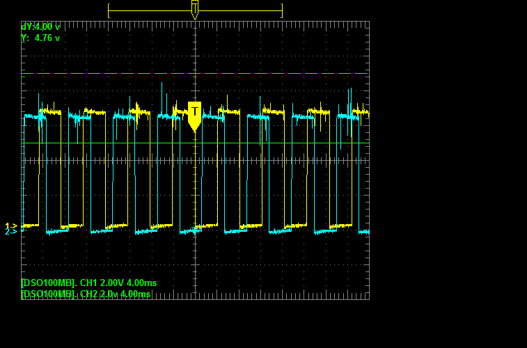 А если с подключенным конденсатором прокрутить ротор дальше, то срабатывает следующий Холл и график показывает уже его позицию. А позиция проблемного входа получается пропущенной.