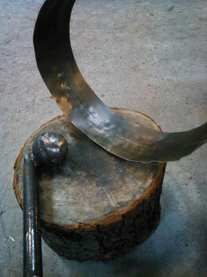 Далее первоначальная обработка сферическим молотком. Получается жутко кривая и страшная железяка, которую просто хочется выкинуть). Но "крыло там, его просто нужно найти"  (с)