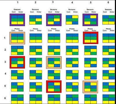 2.Ничего не включая перекидываете между собой желтый и зеленый от датчиков холла.