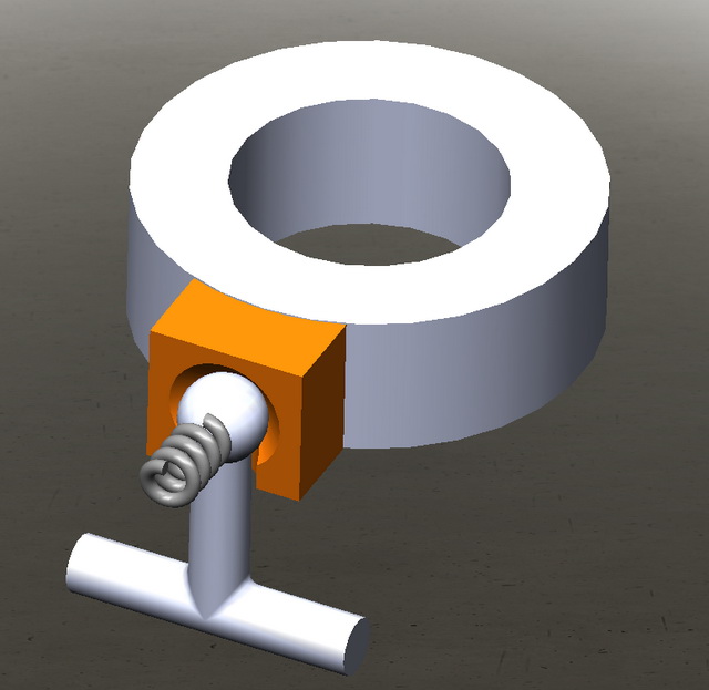 У меня вот так. Демпфер это усеченный цилиндр. Мягкая трубке в которой закреплена шпилька дает махонький ход в продольной плоскости и "заменяет" пружину.