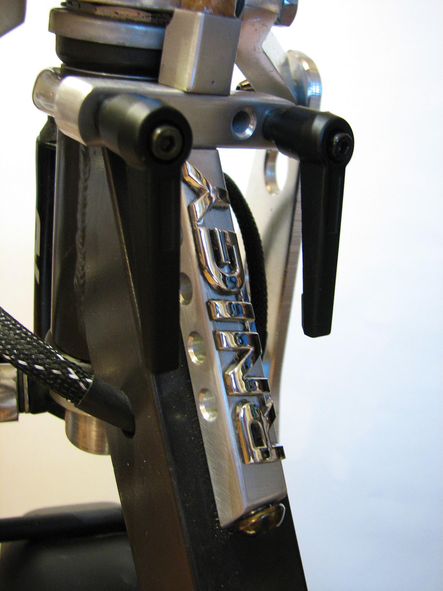 Вот, глядите, передняя вилка. Я, понимая, что нужен положительный трэйл сдвинул колесо назад, к деке.