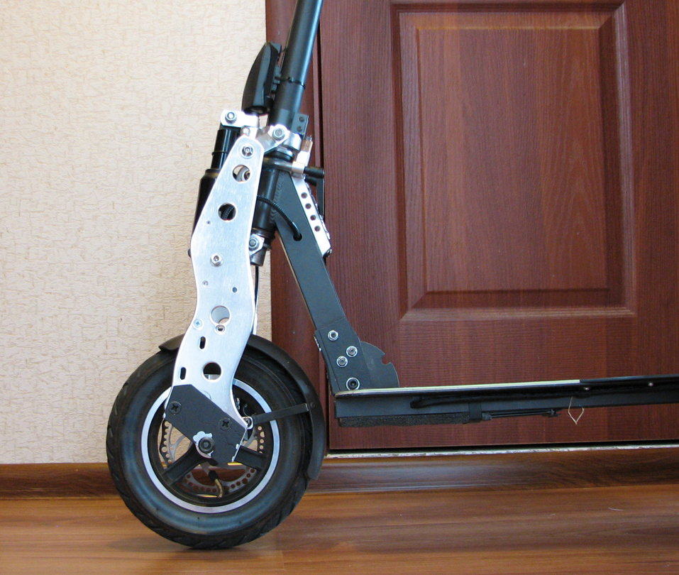 Самокат устойчиво идет по рямой, и еще его всегда можно облокатить  рулем на стенку - не падает.  :wow: :-)