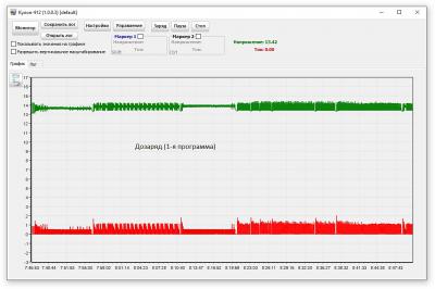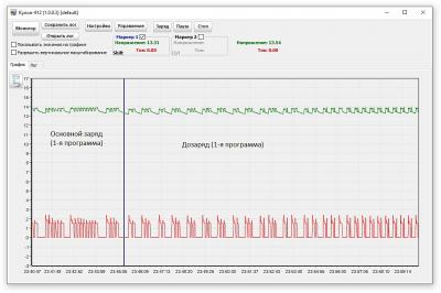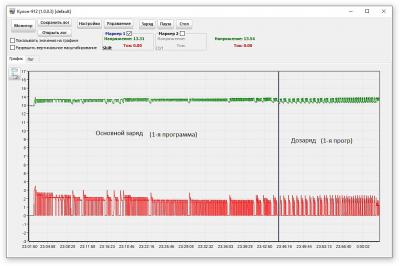 [user]Паяка[/user], Логировал на компе с помощью новой проги логометра. 20 минутная пауза была одна, в конце ее 10 коротких подач (все они уместились в 49 секунд). Загорелся зеленый и минут через 7 я выключил заряд.
