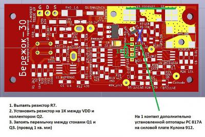 Так как при сопряжении Кулона 912 с новой красной платой управления Бережок 30 в режиме "Блок питания" невозможно использовать все возможности Кулона 912, провел второй апгрейд. Сделал сопряжение в режиме Кулона 912 "Заряд АКБ".