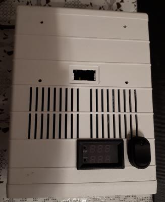 Заранее знал что внутрь корпуса мне плату не поставить ( усиленные радиаторы, кулер 60х60 глубиной 15 мм, термостат для слежения за температурой радиатора выходного каскада и вкл. - выкл. кулера по температуре, миниатюрный AC/DC на 12В для питания датчика температуры АКБ).