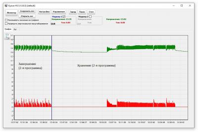 [user]rixnet[/user], когда пошли 20-минутные паузы, между которыми несколько коротких подач, это уже хранение. Перед хранением может пройти 2-3 таких паузы, но подач между ними будет много, если контроллер решит продолжать дозаряд.