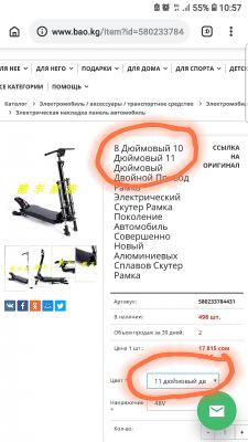 [user]snooper[/user], Спасибо, но на 11-х колесах его нет мы с китайцем переделываем крепления рамы и елетрику под 12-е колеса, есть похожие куррус рс11 и ультрон 128 по моему, точно не скажу, так вот они очень громоздкие, тяжелые и дорогие, я хочу остаться в нормальных габаритах,весе и цене. Если именно этот самокат есть на 11-х колесах, жду фото. Куррус и ултрон не надо фото. Еще раз спасибо.