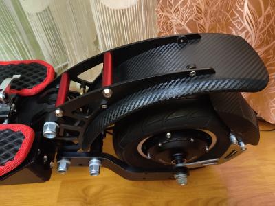 Поставил сзади амморт и отсекатель, тоже обтянул карбоном как переднее крыло. От грязи должно защищать.