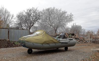 Вот готовый вариант, испытал и очень доволен ,две горки и 800 метров до воды и обратно еду ,а не тащу лодку на себе.