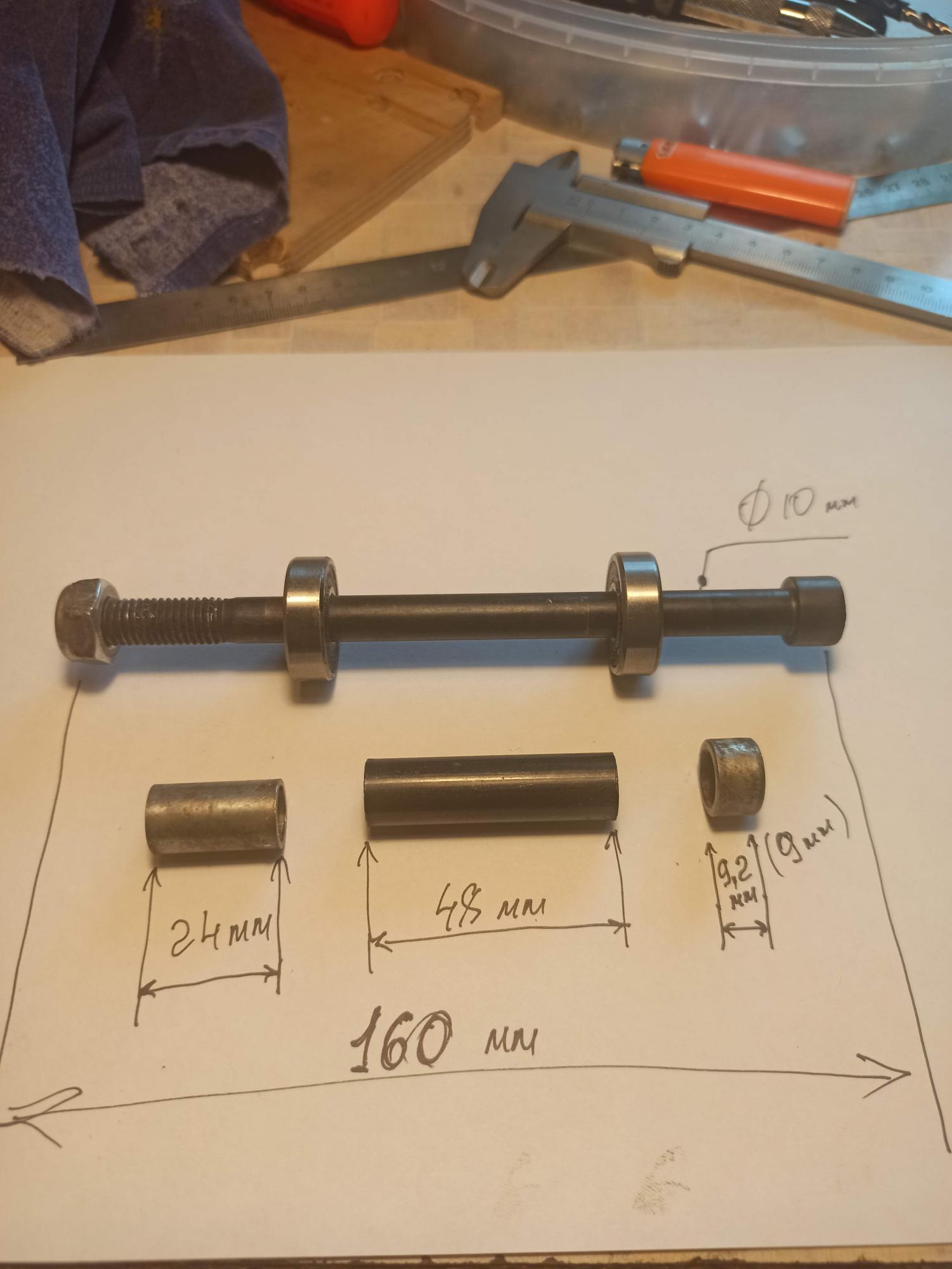 Добрый день. Есть у кого размеры оси, гайки и проставок переднего колеса на kugoo m4 pro?
