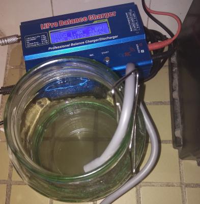 Спустя 4 часа от начала заряда на банке снова 0. Поставил током 2.8а ( 0.04с)  спустя ещё 2 часа нашёл место кз в банке. Греется там где вздулся корпус, в верхней части банки. Подключился АКБ 8ач 12 в от упса свеже заряженный к проблемной банке. Не помогло. Чем ещё можно попробовать кз убрать?