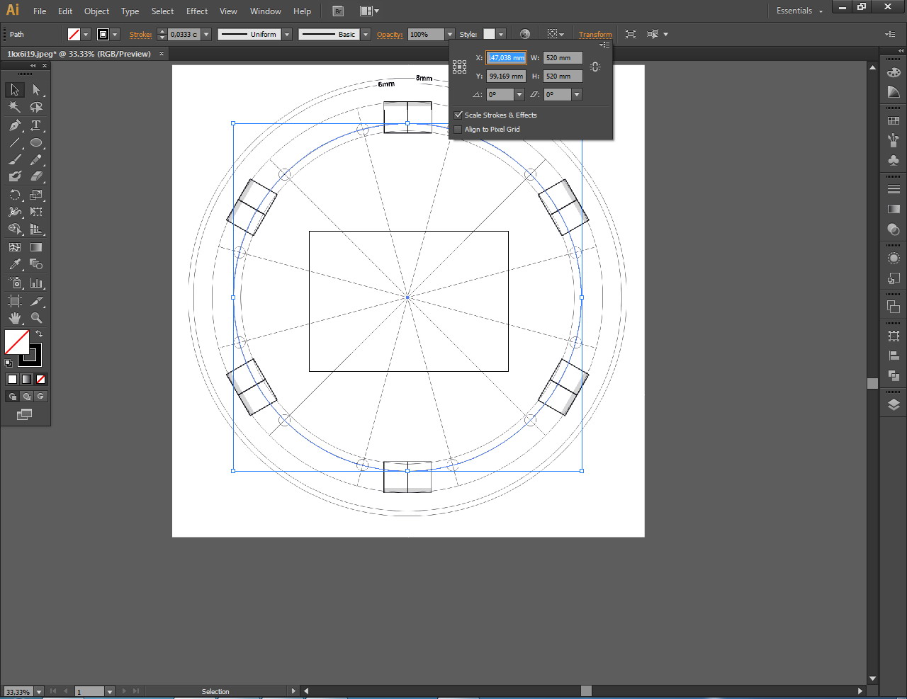 Ради любопытства прикинул в Иллюстраторе, диаметр окружности по центрам отверстий по вашей картинке получился 520мм ... вряд-ли это похоже на правду  /:-)