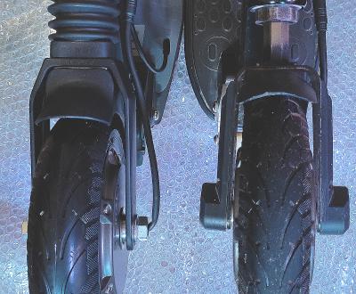 Поставил новые моторы. Сейчас выезжал на тест. Ход конечно значительно мягче стал даже при том что передний аморт не работает (это потом поправлю). На этом фоне снижение динамики разгона вроде как и не напрягает. Скорость меньше чувствуется. Более ощутимо ухудшение тормоза. Но не катастрофа. Пока немного непривычно. Максималка  получилась 46км/ч по дисплею (8.9" в настройках), по gps - 43.66. Подножка теперь коротковата, не поставить. На тестовых заездах заговнял себе спину и рюкзак - родного заднего крыла с новыми колёсиками уже не хватает, грязюку закидывает конкретно. По нагреву пока не понятно - мало ездил.