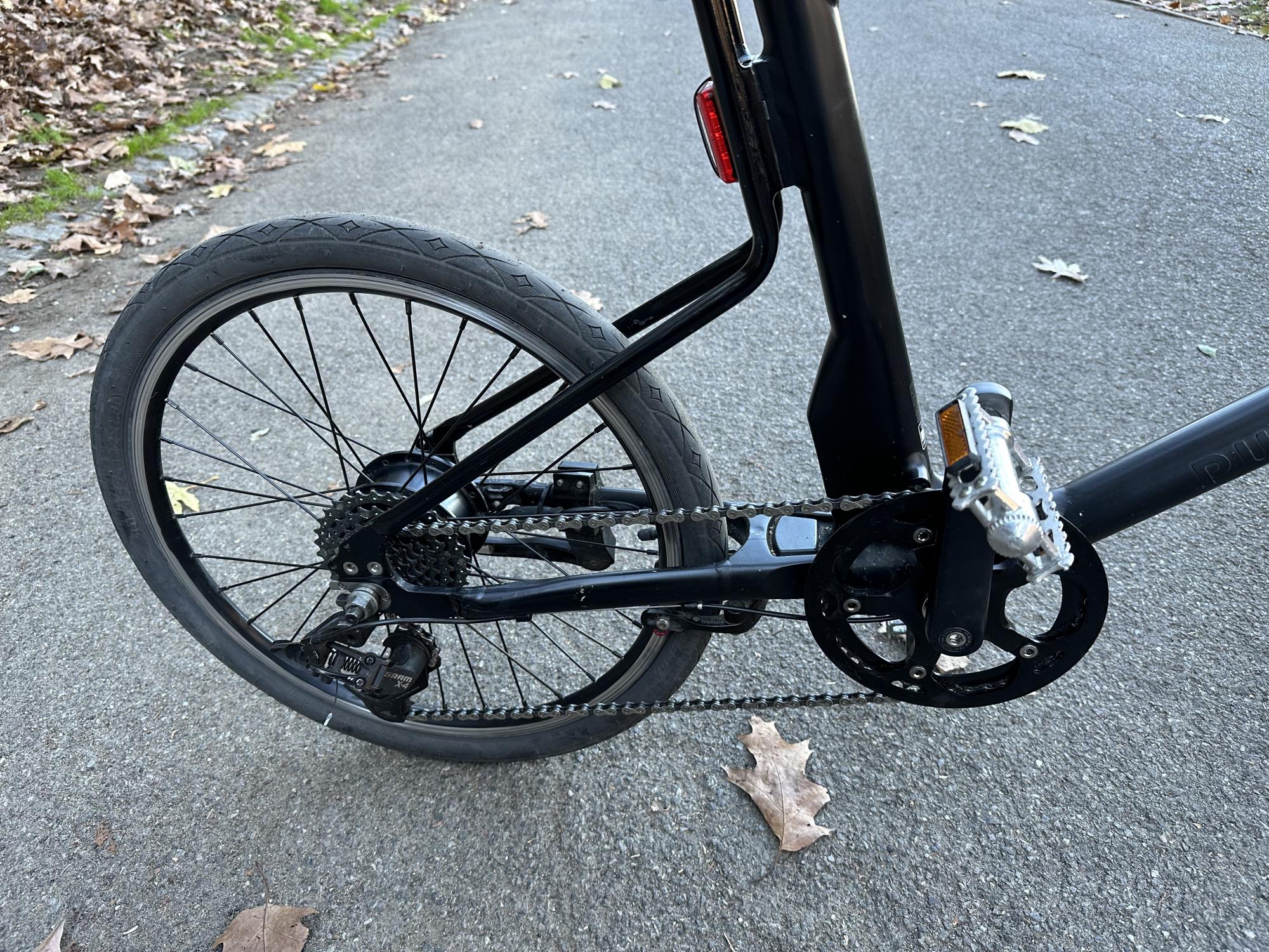Бафанг BPM 36/500W (10), АКБ 48В на 20Ач, контроллер 30А, колеса 20", макс. скорость 35 км/час , круиз 23-25км/час, вел+чел=30+85=115кг, затяжной уклон 10% без педалей на 18км/час, пробег ВООБЩЕ без педалей 55км с суммарным набором высоты около 500м, максимальный уклон 17%.