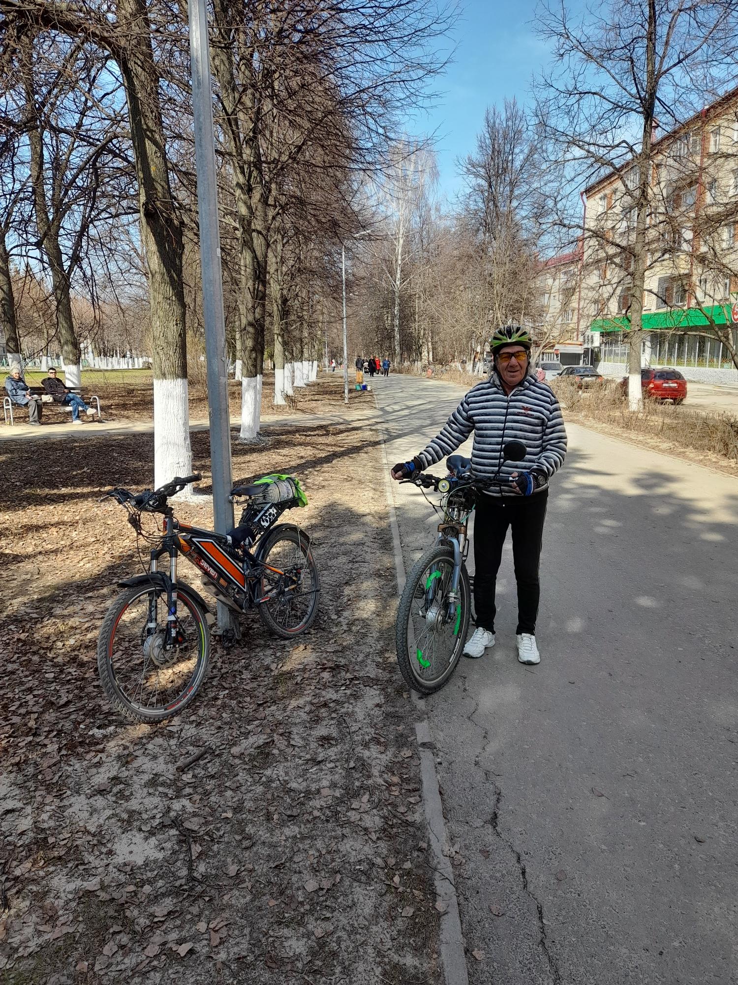 На обратном пути уже в городе встретил знакомого деда 72 лет. Я его 5 лет назад на электровелосипед подсадил (350вт передний), так он с велосипеда не слазит (окромя зимы); причём мотор использует только в горки и против встречного ветра, а так сам педали крутит. :run: