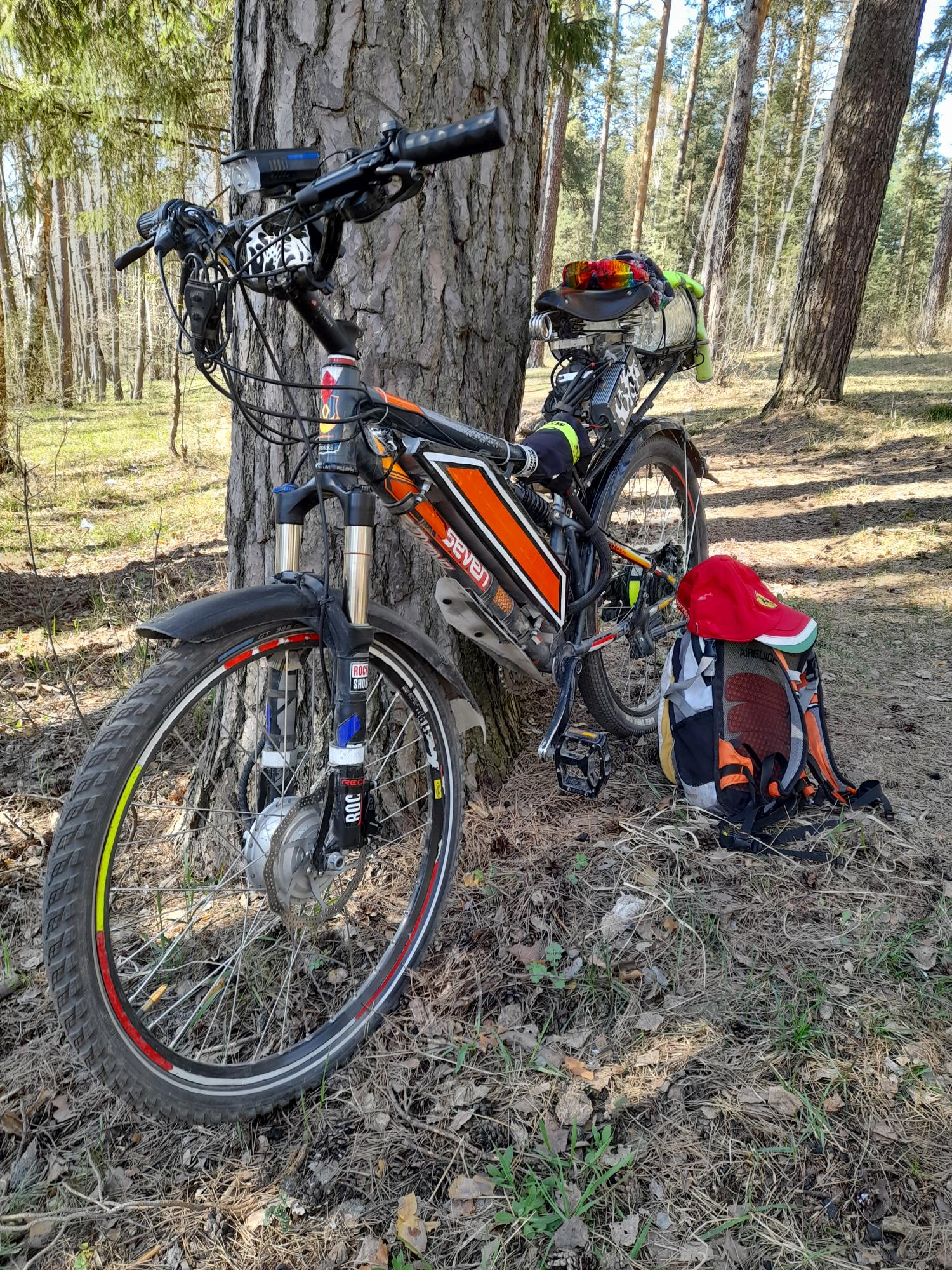 Проехал 55 км.  ~60% расстояния на отсечке 45-50 км.час.  40% грунтовка и пересечёнка, как попало катал и с педальками и без.