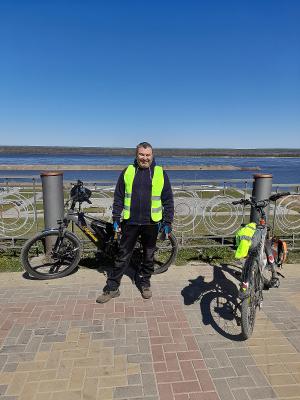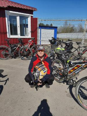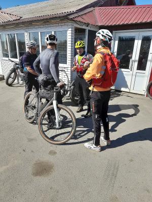 В придорожном кафе встретили группу велосипедистов. Большинство на простых велосипедах, но были и на электровелосипеде.