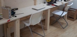 Столов для работы нужно не менее 2х: один "чистый" - проектирование и настройка, документация, мануалы/даташиты (компьютер), один "грязный" - паяльные и слесарно-механические работы (складной верстак или откидной столик у стены).