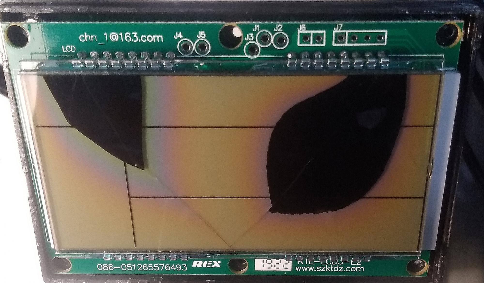 Разобрал KT-LCD3 чтобы изучить плату на предмет мест подключения к Rx и Tx, а также GND и +5В. Так как дисплей все равно треснутый - откусил его чтобы посмотреть дорожки под ним (плата как будто двухсторонняя).