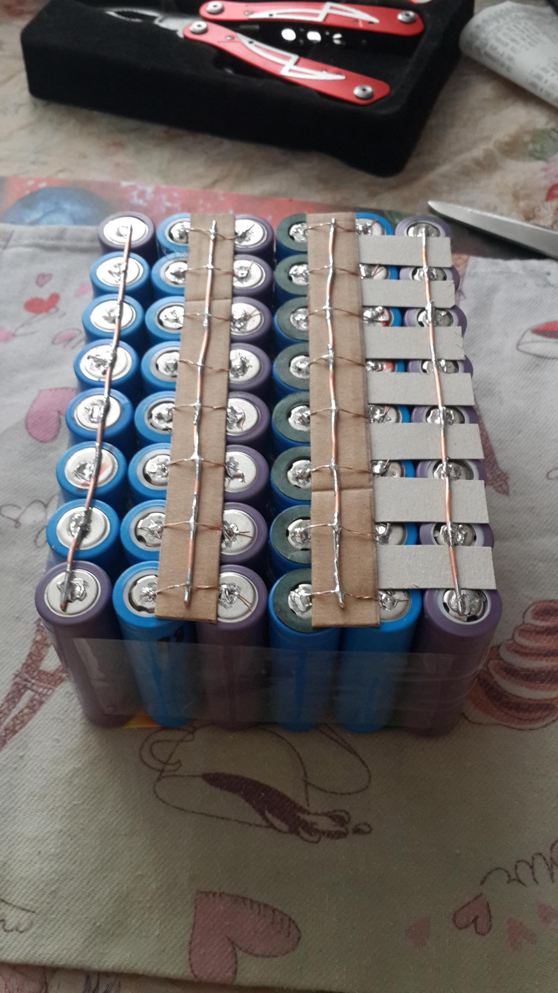Батарейки в параллелях приклеил термоклеем, а между последовательными параллелями проложил липкий картон который остался после разборки батареек от гироскутера, и все это дело приклеил на жидкие гвозди :-)
