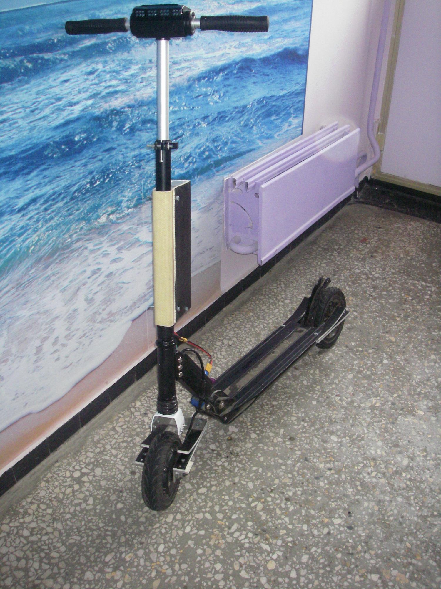 Я перенёс мотор назад,всё хорошо,передняя вилка новая под колесо 10" с тормозом.Но почему то стал сильно греться мотор.В чём проблема не понятно.Соединял через удлинитель,купленный на али.