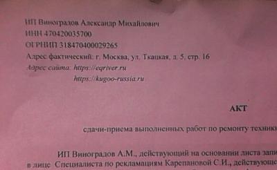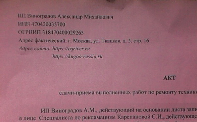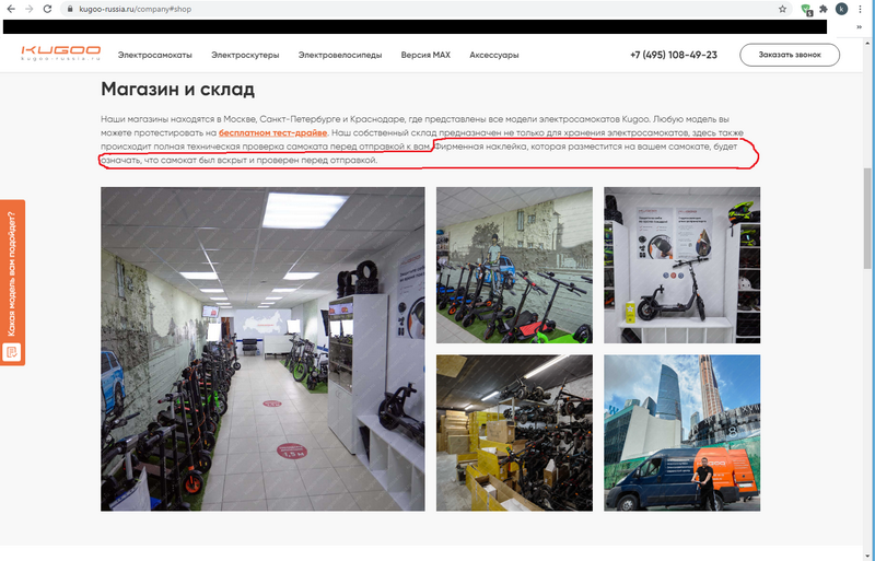 Вывод: запомните этот адрес https://kugoo-russia.ru/company#shop и обещания, что самокат будет вскрыт и проверен.
