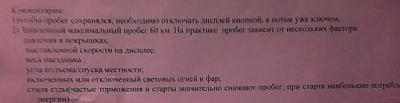 Купил в конце июня. Тож одометр не сохраняет пробег если выключить питание ключём. Решил эту проблему заменой курка  на полноценный. На механизме складывания, мотор-колесе, батке и контроллере голограммы есть. Мотор без датчиков холла и даж проводов к ним нет. При старте неприятно дребезжит. Задние амортизаторы - муляж, только пружины. В передних амортизаторах слышно что масло есть, только они почти не аммортизируют. По пробегу: в городе почему-то 20-25км, вес 94. По прямой не замерял дальность. Замерял ёмкость АКБ - 20.5ампер/часов при токе разряда 7-8 ампер. И ещё одна особенность , при достижении напряжения 43 в (без нагрузки) уже не едет, не вырубается а просто не едет.