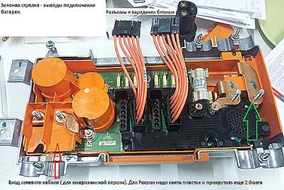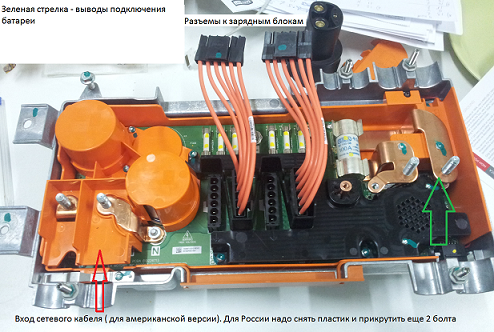 Довелось недавно помочь знакомому в поиске. Сделал пару фоток. Вот так изнутри выглядит "Электро раздатка" - он же коммутатор входной от TESLA model S. На фото коммутатор располовинен. Слева вверху под оранжевым пластиком стоит пара хитрых контакторов, подключающих фазу с нулем к преобразователям. Эта версия коммутатора от американки. Для нашей страны надо снять пластик и добавить еще пару контакторов и вкрутить дополнительные болты. Ну еще доработать по входным кабелям. Что интересно, сюда же можно по тем же проводам подать постоянку от фастчарджера. Система сама определит, что пришло и контакторы переключат линии прямо на батарейные контакты.