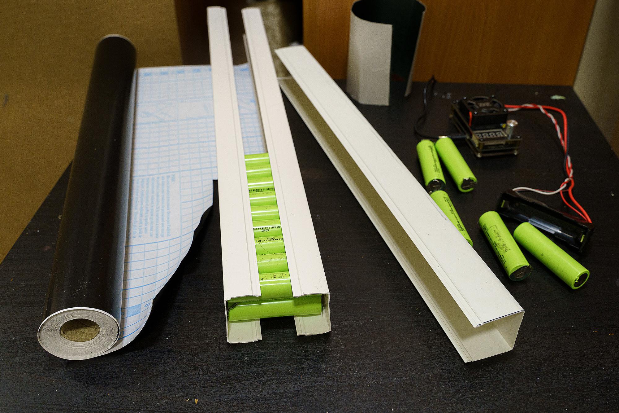 Из кабель-канала делал и "корпус" дополнительной батареи, для жёсткости и аккуратного внешнего вида (чтоб не выпирали провода, места пайки).