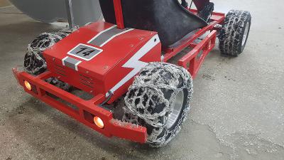 попробуйте зимнюю резину от картинга поставить, по снегу хорошо держит