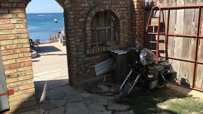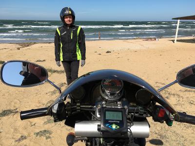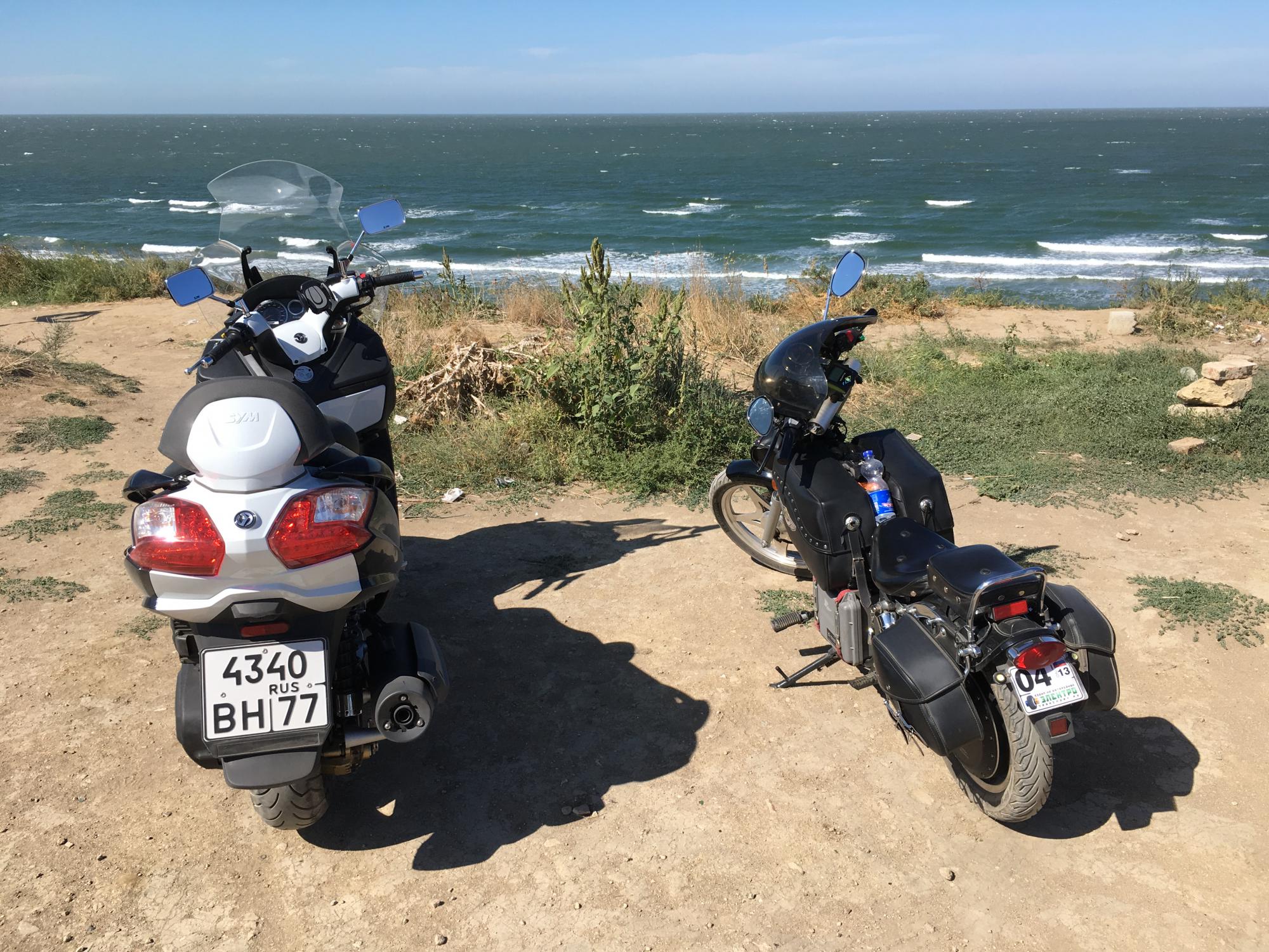 Искупались на бесплатном пляже, заехав на моцике прям под тень пляжной веранды. Нормально, но пляж и вода в Орджоникидзе все-таки лучше.