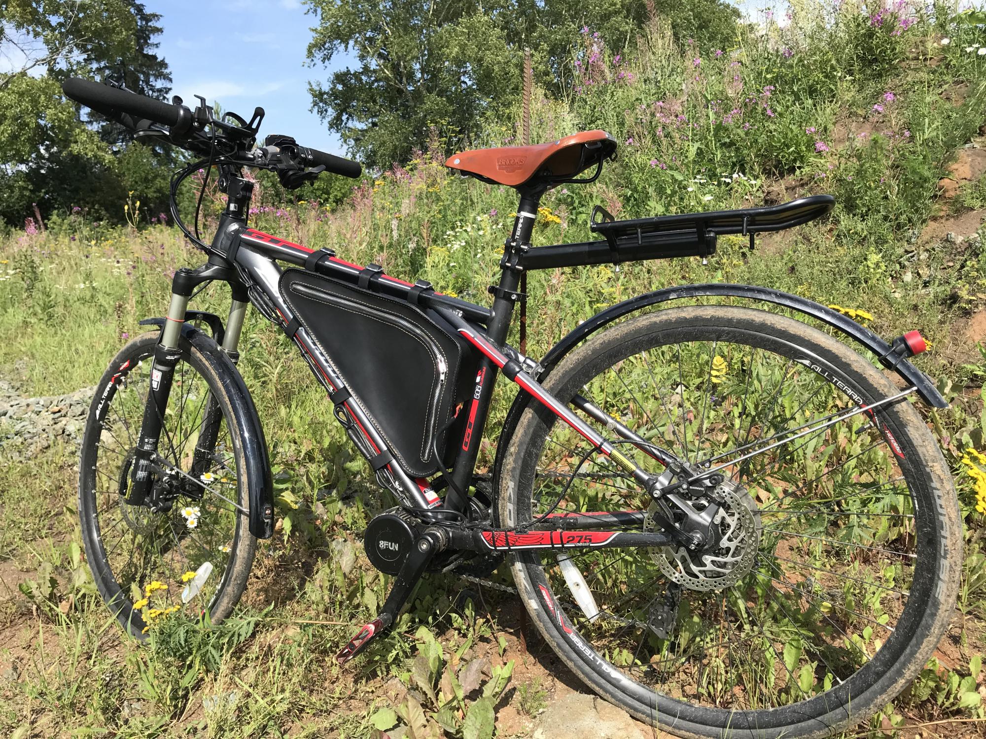 Стоимость сумки в раму по вашим размерам (замер всех сторон треугольника по фото), с гидрозащитой и молнией как на примере - 5000р. + стоимость доставки по тарифам почты России.