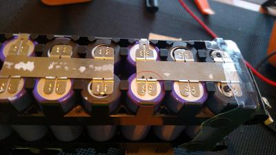 Здесь, похоже, отгнила одна банка из трёх в параллели. Причём, возможно, даже чисто механически сварка/пайка отвалилась. Разбирать батарею, смотреть.