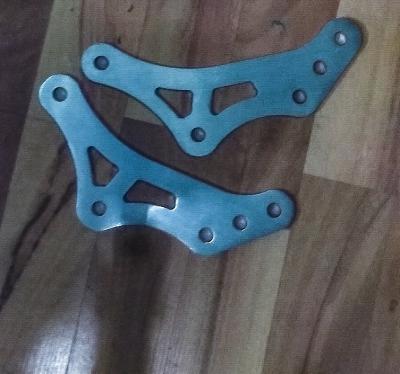 В рычагах выполнено несколько отверстий для изменения рычажности и мягкости, но потом понял, что это не пригодится, так как мягкость и рычажность регулируется путем перемещения креплений по перьям вилки. Также регулируется и вынос колеса и клиренс