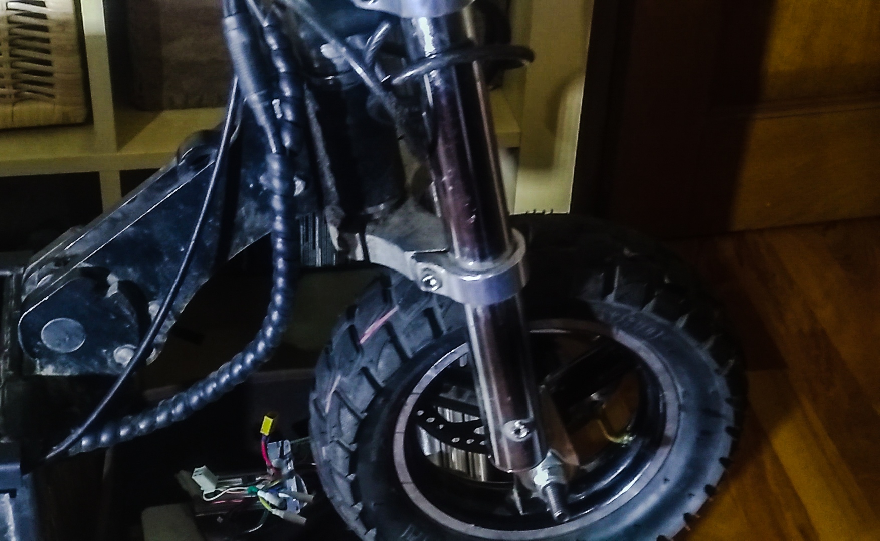 При таком наклоне как раз я тестировал подвеску, имеет наибольшую мягкость так-как когда  встаешь на самокат- рычаг принимает практически параллельное положение относительно земли. Сглаживает все и мелкие камушки и относительно большие ямы. (я бы даже убавил мягкость и добавил угол, сделал бы жестче, но это потом после сборки)