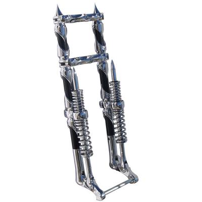 Крепления амортизаторов к перьям вилки использовал такие же как и на руле (алюминий, чпу) и использовал алюминиевую трубу в качестве проставок в крепления, диаметром 22 мм, наклон этих креплений пришелся кстати- пружины под нужным углом приходят к рычагам и не торчат.