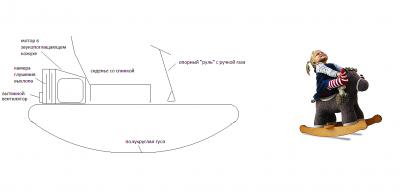 Упрощенно концепцию построения аппарата можно представить рисунком ниже.  Переносом центра тяжести можно задирать и наклонять аппарат.