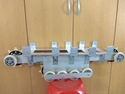 Это у вас шпильки резьбовые в качестве осей используются? Как-то ненадежно выглядит