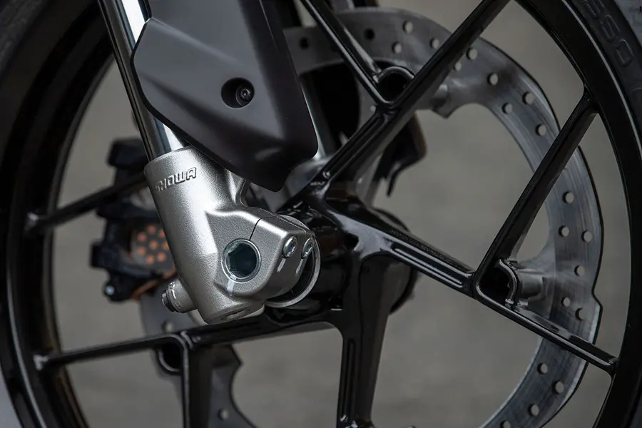Команда модернизировала передние тормозные диски, поменяла ручки и добавила одно зеркало на конце руля, но остальная часть ходовой части такая же, как и с завода.