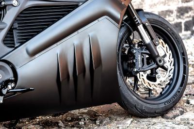 С краской не происходит ничего необычного - только слой полуглянцевого черного цвета, который добавляет этому нестандартному LiveWire грозную эстетику.
