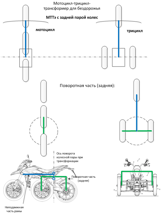 Мотоцикл-трицикл-трансформер для бездорожья: МТТэ
