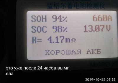 Итак после 12 часов отстоя после дозаряда Вымпелом 57: