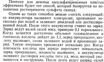 Мужики, а ничего что акб и материалы которые в них использовались в 30х изменились? и как следствие отсутствие надобности сливать электролит для того, что бы вымыть, то что осело вместе с сульфатом на поверхности пластин и мешает десульфатации, книжки то надо от начала до конца читать.