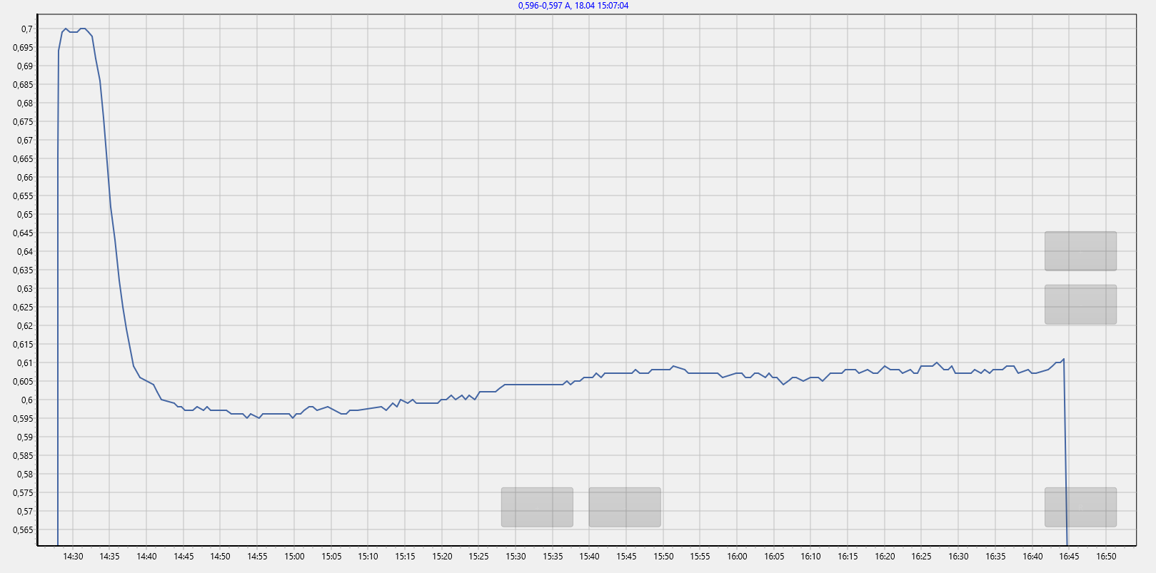 Попробуем взять этот рубеж! Если дотянемся до 16.5В, ждать минимального тока и засекать 2 часа?