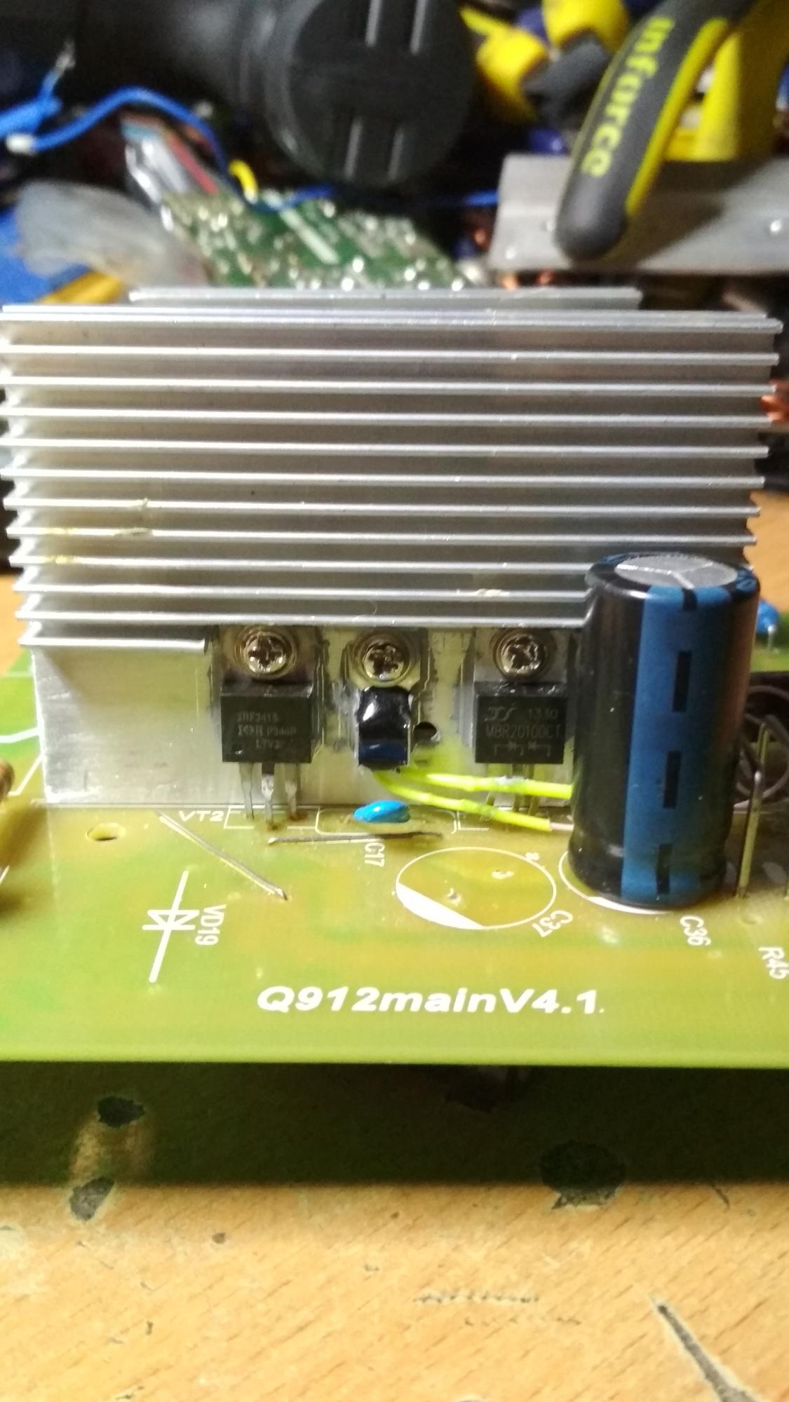 После модернизации радиатора транзистор держит более-менее нормальную температуру: