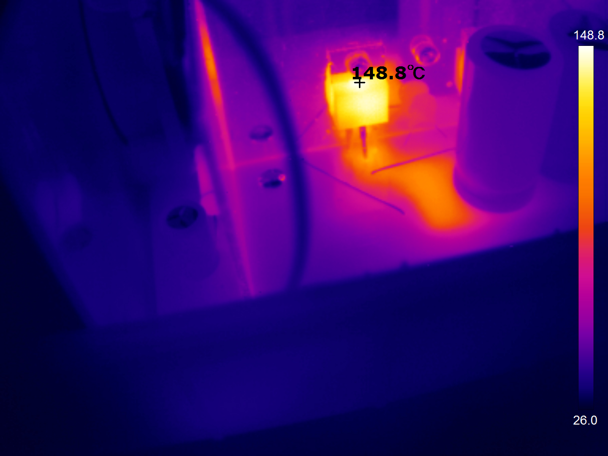 На термограмме разряд током 3 А, две минуты после старта. Если кто использует разряд 3 А – его вообще нельзя использовать "из коробки". Температура радиатора при этом около 60 градусов. Вот они, легендарные заклёпки, отсутствие термопасты и радиаторы из фольги.