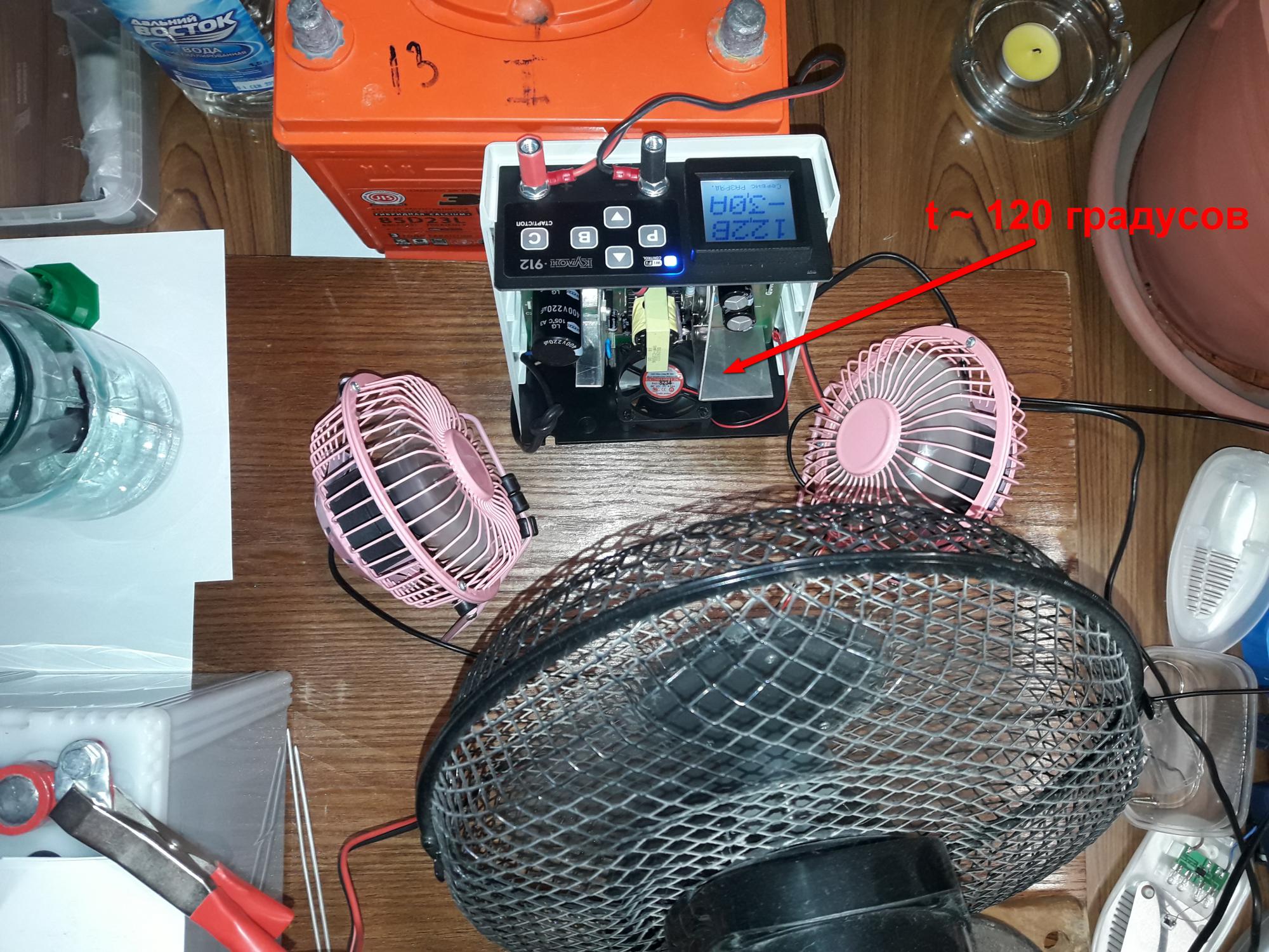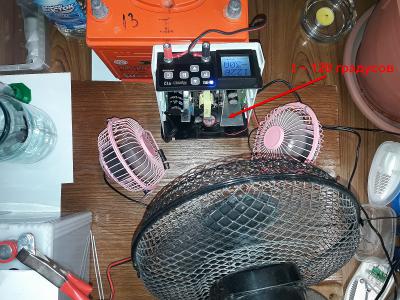Здравствуйте. Недавно выписал Кулон по почте. Установил прошивку Q912R904. Разряжаю АКБ FB9000 (80 Ам ССА 760А) 110D26L. Установил ток разряда 3 ампера. Учитывая публикации в инете о том, что Кулон нуждается в некоторых доделках (в целях избежания перегрева и выхода из строя) вскрыл верхнюю крышку ЗУ и направил на него три вентилятора (так как пока нет времени на переделки в части установки большого кулера, других радиаторов, замены клёпок на болтики и посадку транзисторов на КПТ и т.д.). Измерил температуру (пирометром) в районе радиатора. Температура достигает ~ 120 градусов. Подскажите, можно ли при такой температуре продолжать разряд АКБ? Разряжаю уже 9 часов. Может быть уменьшит ток? К примеру, с 3 ампер снизить до 2 ампера? Заранее, благодарю за ответ