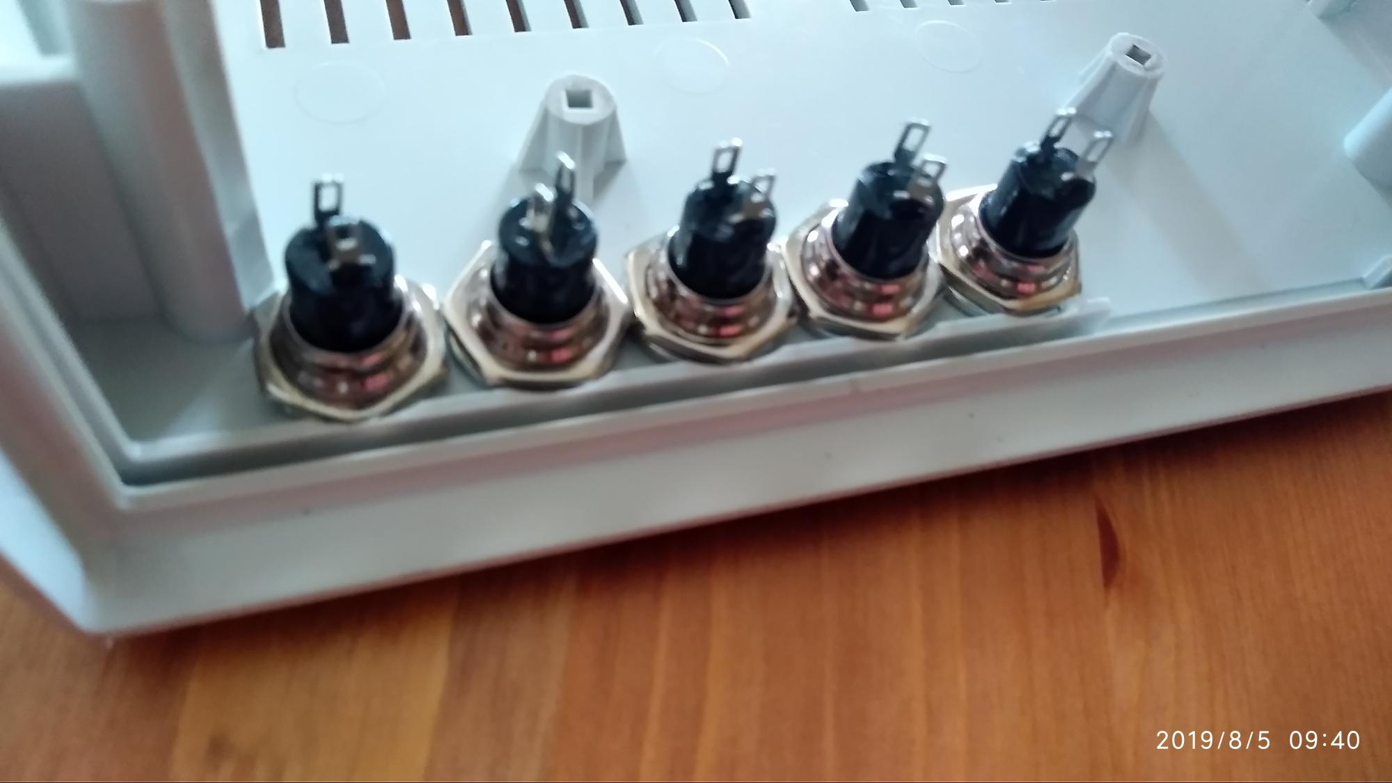 Кнопки из ближайшего магазина, не очень нравятся - нажим без клика (палец не ощущает момент срабатывания, нажал до конца и всё), потом заменю на что-нибудь приличное с подсветкой с Ali... По кнопкам; диаметр отверстия 12 мм, сверху упорное колечко - 14 мм, Снизу корпус доработан под гайки циковкой на 16 мм, расстояние между кнопками - 15. Гайки закручиваются тяжело, т.к. очень плотно друг к другу, но хотелось кнопки разместить максимально компактно и сместить максимально вправо..