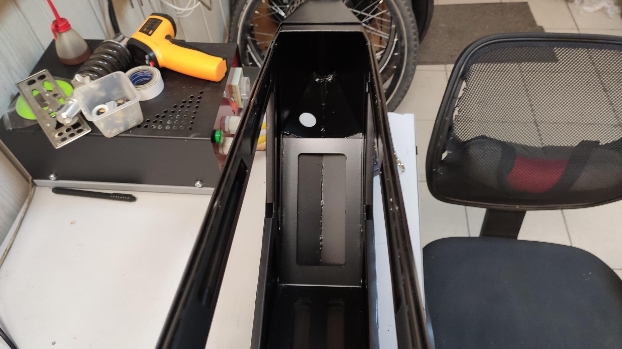 6. Маятник рамы изготовлен из листовой стали 2мм и 1.5мм, втулка каретки интегрирована в маятник и позволяет использовать стандартные велосипедные компоненты с осевой шириной 124+